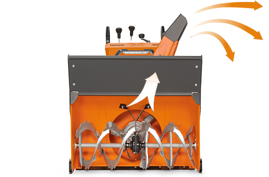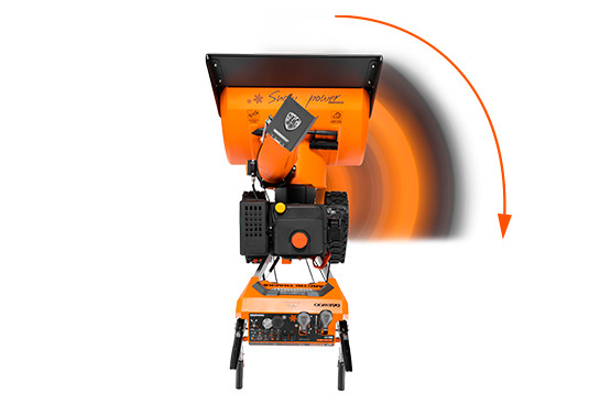 Изменение угла выброса на 180 градусов дает возможность мгновенно изменять направление и дальность выброса снега непосредственно с панели оператора.