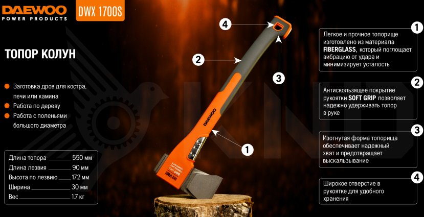Топор-колун 550 мм DAEWOO DWX 1700Sв Белгороде