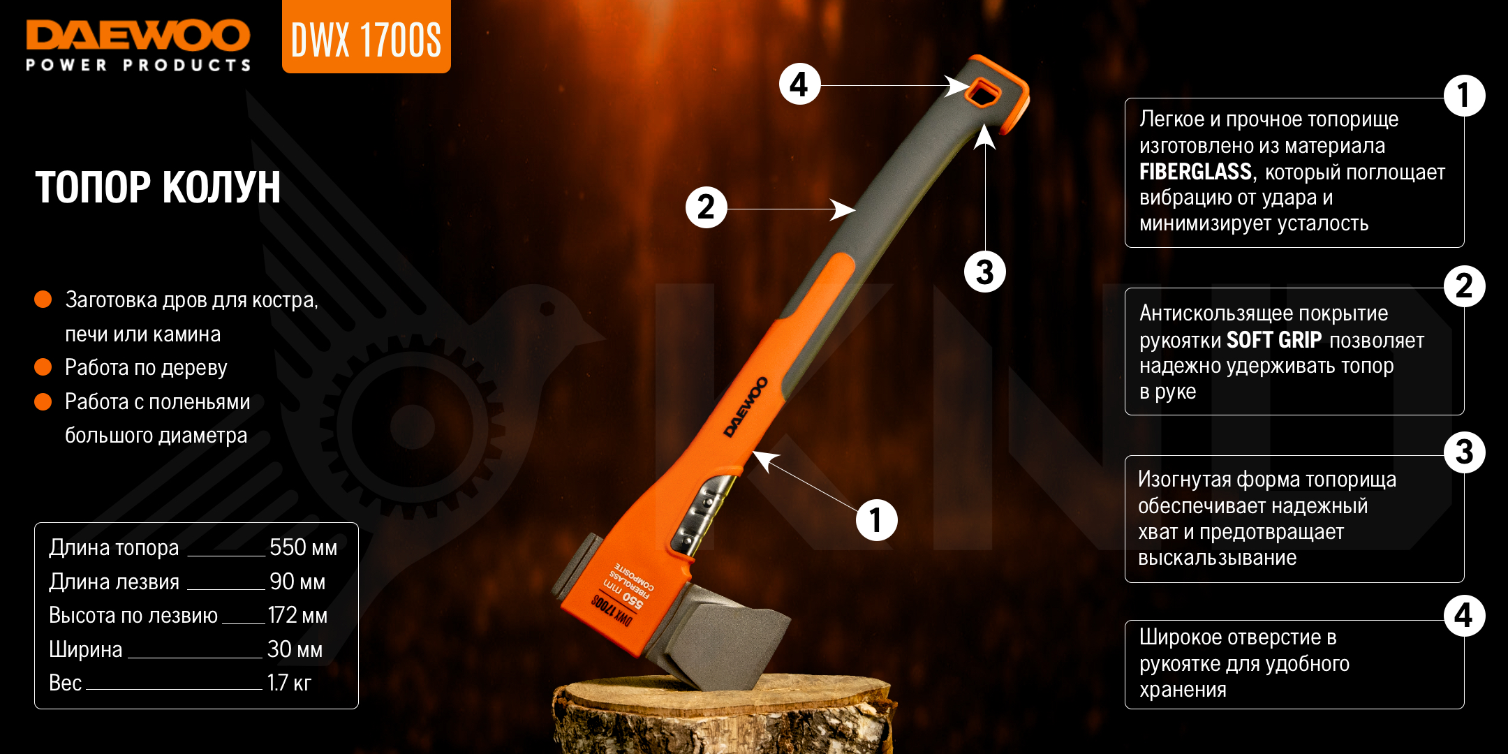 Топор-колун 550 мм DAEWOO DWX 1700S