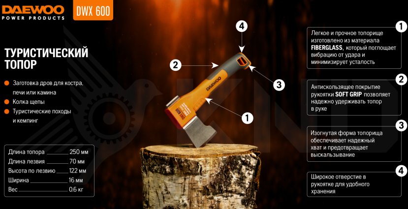 Топор универсальный 250 мм DAEWOO DWX 600в Белгороде
