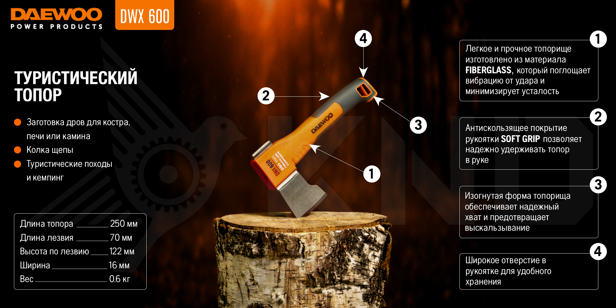 Топор универсальный 250 мм DAEWOO DWX 600