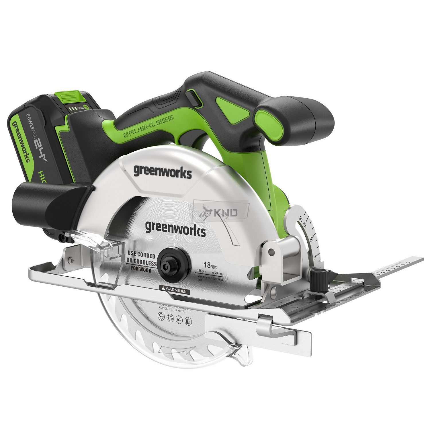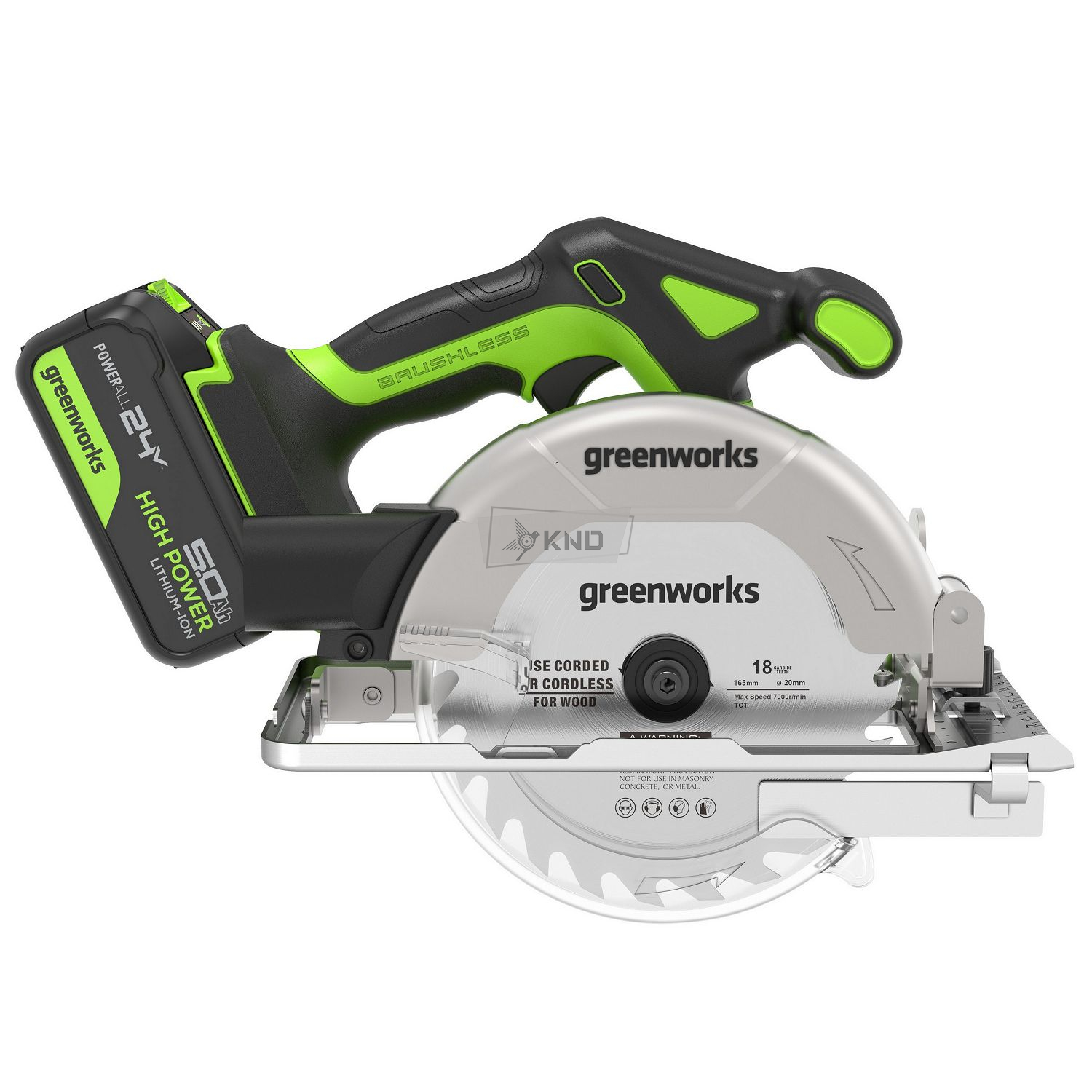 Циркулярная пила аккумуляторная Greenworks GD24CS165, 24В, с АКБ 5 Ач и ЗУ